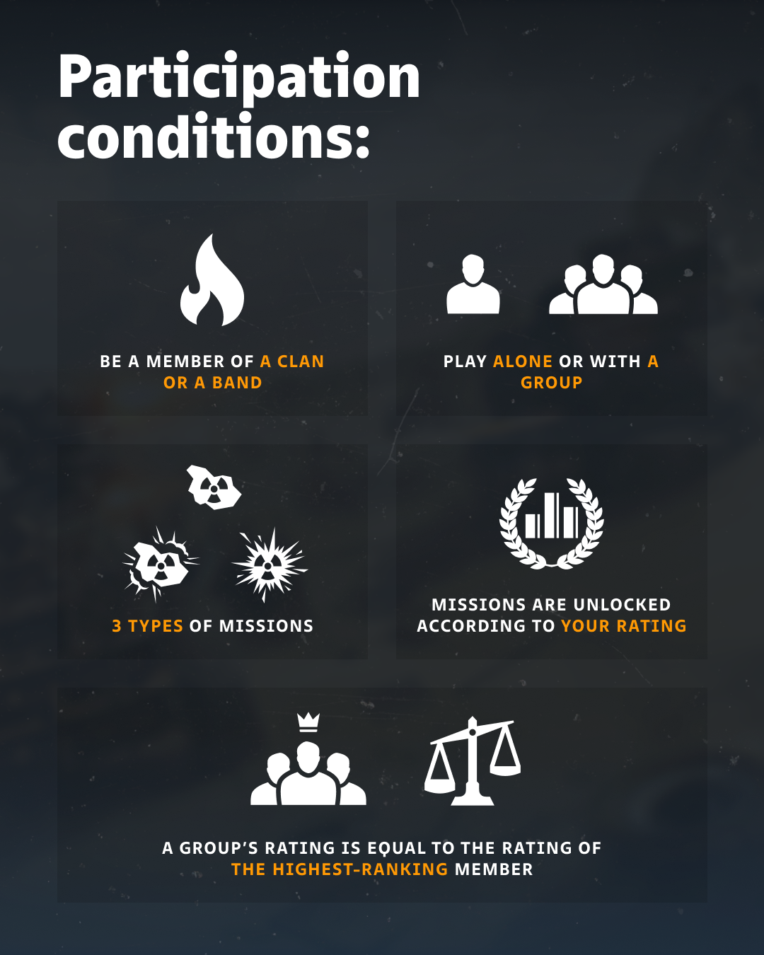 Each category is a specific mission with its own rules. We’ll tell you more about them below.
